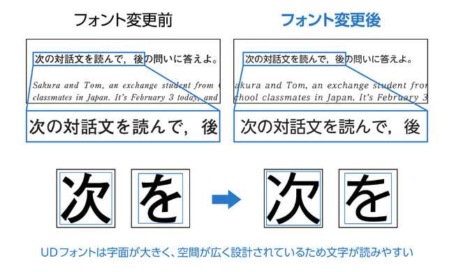 到達度テストの受検者は、学びの段階や障害の有無など取り巻く環境がさまざまです。そのため、より多くの受検者への配慮として、UDフォントが採用されることになりました。