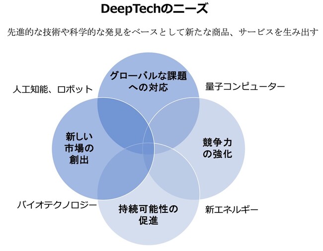 これらの要因が相互に影響し合うことで、ディープテックのニーズや関心が高まってきていると言えます。