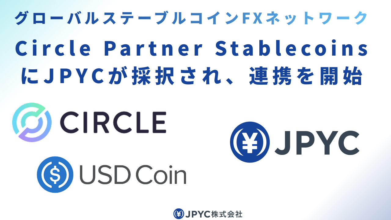 JPYC株式会社(本社:東京都千代田区、代表取締役:岡部 典孝、以下「当社」)は、本日、米国Circle Internet Financial社(以下「Circle」)が発表した「Circle Partner Stablecoins」プログラムにおいて、日本円建ステーブルコイン「JPYC」がパートナー通貨として採択されたことをお知らせいたします。