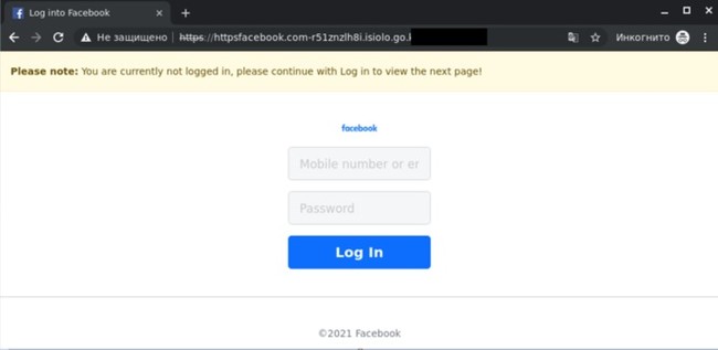 図1:「facebook.com」を含むドメイン名を使ったフィッシングページの例