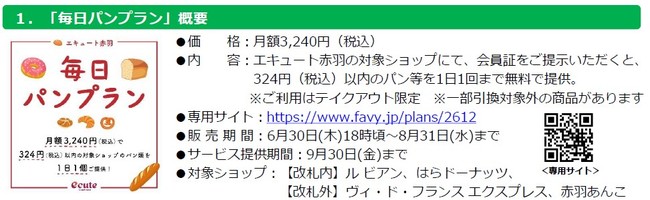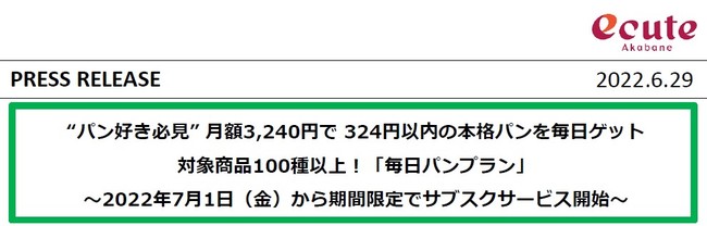 2022年7月1日(金)より、エキュート赤羽は、Suicaをお持ちの全てのお客さま向けに提供されるJR東日本のサブスクリプションサービス「JREパスポート」を提供いたします。エキュート赤羽で提供する初めてのサブスクプランとなる「毎日パンプラン」は、こだわりのベーカリーショップの本格的なパンなどを毎日お得にお楽しみいただける“パン好き必見”のプランです。