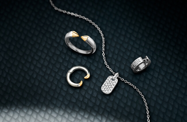 今回「4℃ HOMME+」から初となる「NEW YEAR COLLECTION」が登場。干支の龍のうろこをイメージしたデザインは、身に着けるだけで力強く洗練された印象をプラスします。うろこの柄を表面に施したネックレスやピアスは、凹凸のある表面が存在感のあるデザインです。龍の爪のようにリングやイヤーカフのエッジ部分をとがらせたシリーズは、エッジ部分に施したイエローゴールドカラーがささやかなアクセントを添える上級者向けのアイテムに。