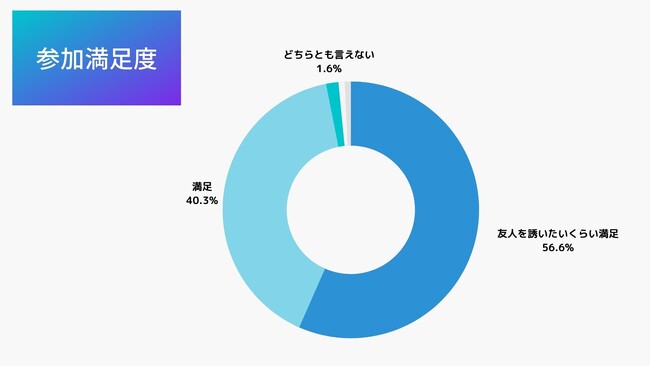 2023年1月からスタートした紹介制・経営者限定オフラインイベント「BAR貸切交流会」の参加者アンケートでは、参加者の90%以上の方に「満足した」と回答しています。