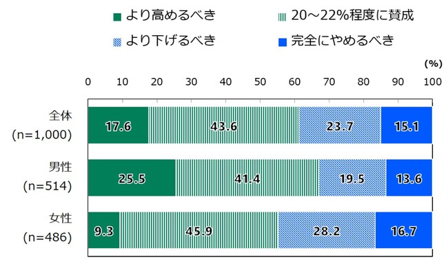 ・2030年の原子力発電比率目標20〜22%への賛否(n=1,000)