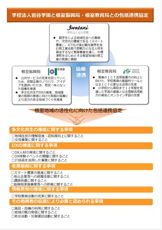根室振興局では、学校法人岩谷学園及び根室教育局と、根室地域の活性化に向けて、相互に連携・協力しながら、協働事業に取り組むことを目的とした包括連携協定を締結しました。