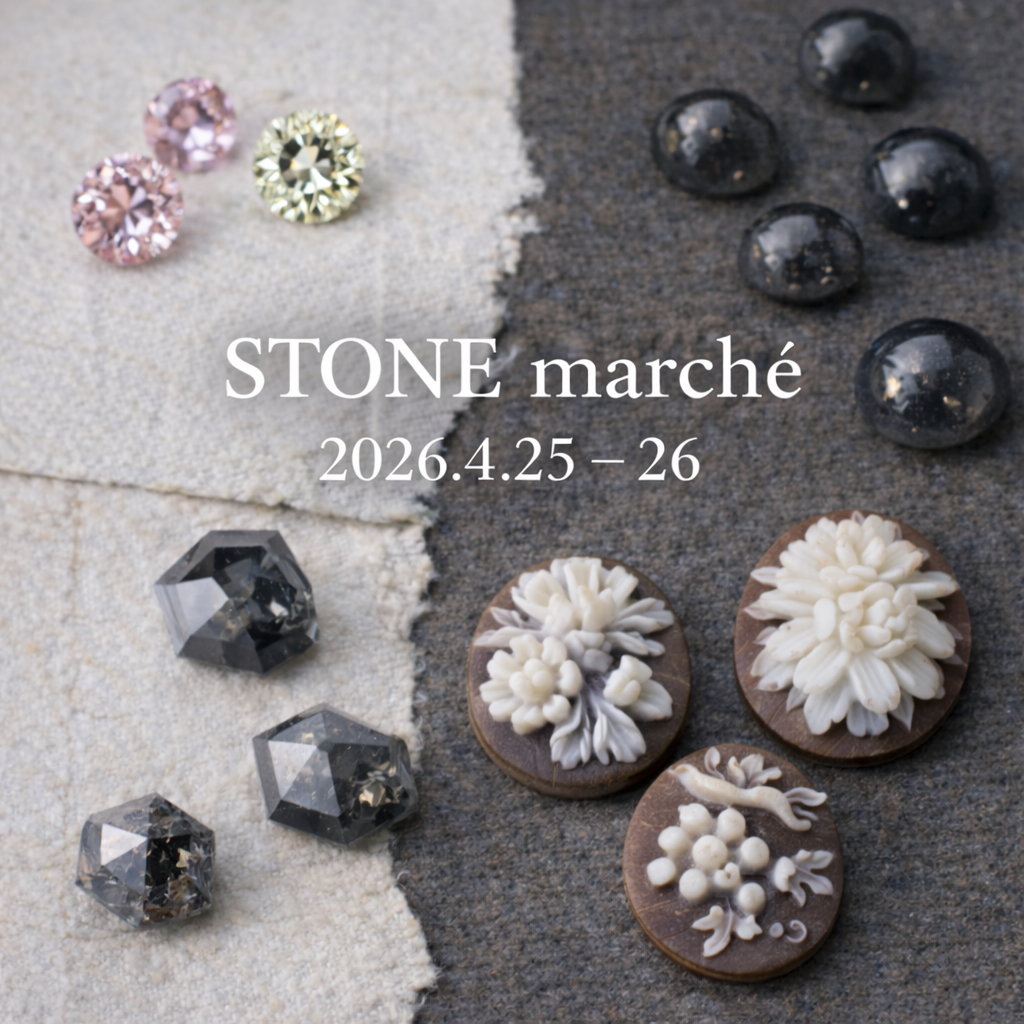 さらに4月25日(土)・26日(日)のSTONE marcheでは、約100石の多彩なルースをご用意し、色や形、質感の違いを見比べながらお選びいただけます。