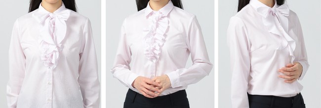 このたび展開する「黒無地セットアップ」「取り外しリボンフリル4WAYブラウス」「取り外しフリル3WAYカットソーブラウス」は、この春新生活を迎えるフレッシャーズの方へ向け、好みのスタイルに合わせて着用いただける“入学式から就活、入社式まで使えるデザイン”にこだわりました。