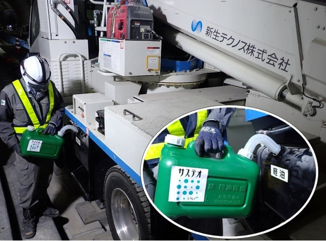 この度、この包括連携に基づく取組みとして、神奈川東部方面線事業(相鉄・東急直通線)の鉄道建設工事において、電車線工事を行う新生テクノス株式会社(本社:東京都港区)及び軌道工事を行う東鉄工業株式会社(本社:東京都新宿区)の協力のもと、次世代バイオディーゼル燃料「サステオ」を燃料の一部として給油した工事車両により工事を実施し、順調に作業が進みました。