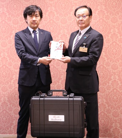 自立自走可能な地方創生をサポートするレッドホースコーポレーション株式会社(本社:東京都墨田区、代表執行役社長:山田健介、以下 当社)は、新潟県魚沼市(市長:内田幹夫、以下 魚沼市)の災害対策の一環として、ポータブル蓄電池RH-6000を寄贈しました。5月24日(水)に、魚沼市役所にて寄贈式を行いました。