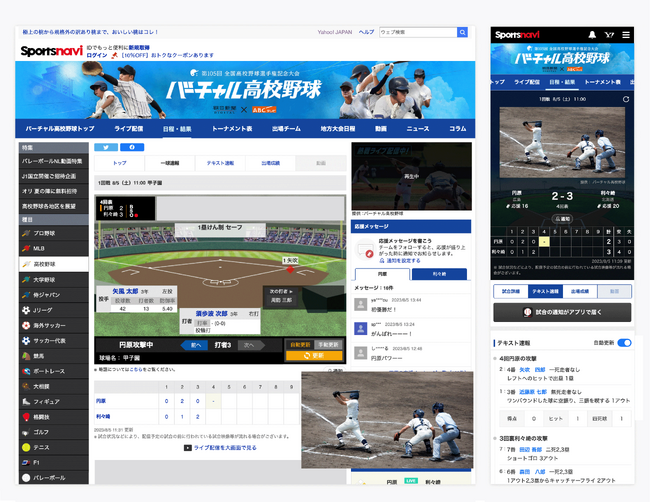 ※「スポーツナビ」の「バーチャル高校野球」は8月3日に全国大会の仕様に切り替わる予定です。