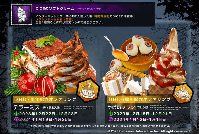 株式会社シティコミュニケーションズ(本社:神奈川県横浜市、代表取締役:三田大明)が運営するインターネットカフェ「DiCE(ダイス)」は、2023年12月15日(金)より株式会社Behaviour Interactiveが提供するアクションホラーゲーム『Dead by Daylight(デッド バイ デイライト)』とのコラボ企画を開催いたします。
