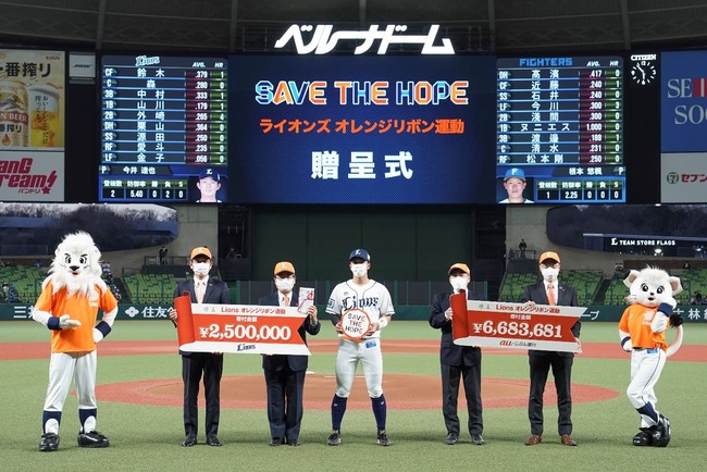 昨年実施しました「SAVE THE HOPE ライオンズ オレンジリボン運動」もおかげさまでファンの皆さまのご理解とご協力によってたくさんの寄付金を集めることができました。ありがとうございました。
