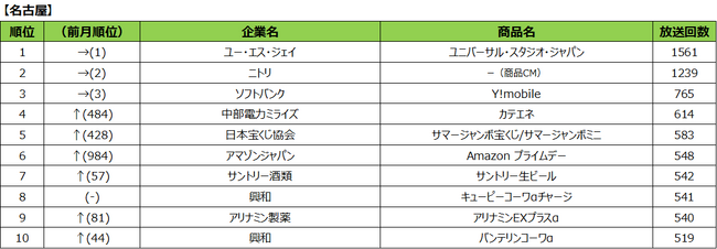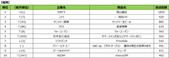 2023年7月度 商品別テレビCM放送回数ランキング