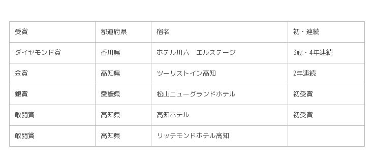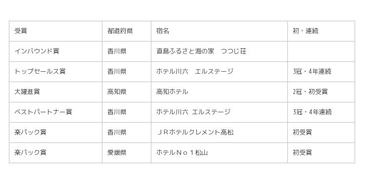 楽天トラベル、『楽天トラベルアワード2015』(四国地区)の結果を発表
