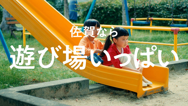 この動画では、住宅地にある小さな公園の滑り台で、兄妹がつまらなさそうな表情を浮かべて座っています。思いっきり遊べる佐賀県との対比を描いた内容となっています。