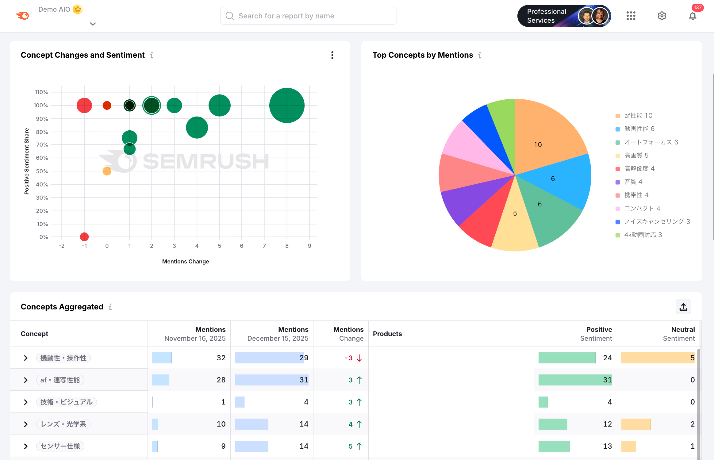 Semrush Enterprise AIO の機能詳細は こちらのページ をご参照ください。