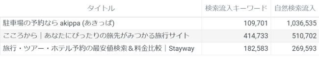 業界内で平均以上の検索流入を持つのは3サイト