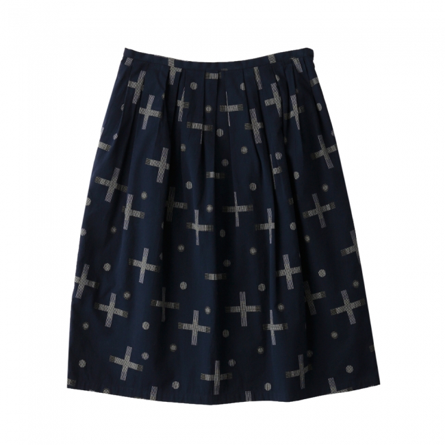 細いラインで表現したクロスとドットの柄。縦と横の異なる色が重なる、繊細なジャカード織のテキスタイル。細い糸で織りあげているので軽く、サラッとした素材感が美しいフォルムを実現します。ブラウスとスカートのセットアップコーディネートがおすすめです。
