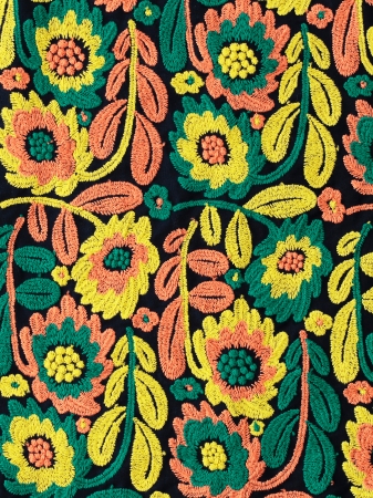 溶ける様な柔らかなフラワーモチーフを刺繍で仕上げたオリジナルのテキスタイル。刺繍には太い糸を使用しているため立体的でボリュームがあり、とても華やかな仕上がりに。鮮やかな蛍光カラーをポイントにした色使いは、個性的で目を引く、特別な雰囲気。同素材のバッグは、コーディネートに取り入れやすくおすすめです。