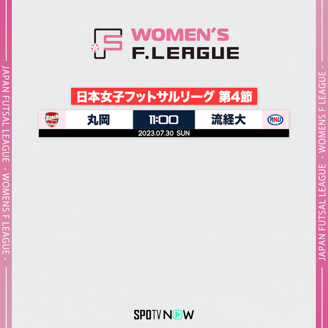 7月30日(日)に日本女子フットサルリーグ2023-2024 第4節を開催いたします。今シーズンもSPOTV NOW(登録・視聴無料)にて全試合をライブ配信いたしますので、ぜひご視聴ください!