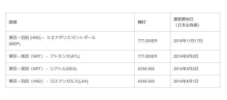 【米国アトランタ、2018年7月30日】 – デルタ航空(NYSE:DAL)は、2018年11月から2019年3月にかけて、新たに4つの日米路線に、個室タイプのビジネスクラス「デルタ・ワン スイート」とプレミアムエコノミー「デルタ・プレミアムセレクト」を導入します。これは、エアバスA350-900型機の追加納入と、ボーイングB777-200ER型機とB777-200LR型機の改装完了に伴うものです。