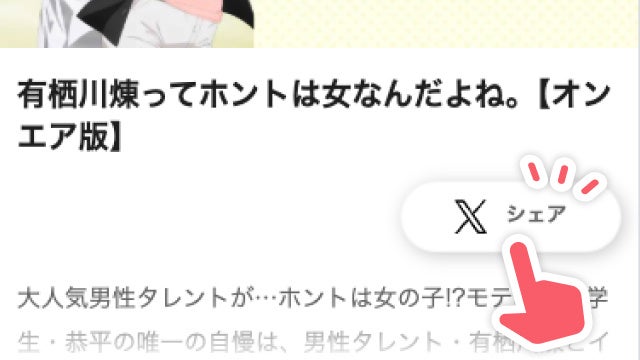 STEP1『有栖川煉ってホントは女なんだよね。』のページからシェアボタンを選択
