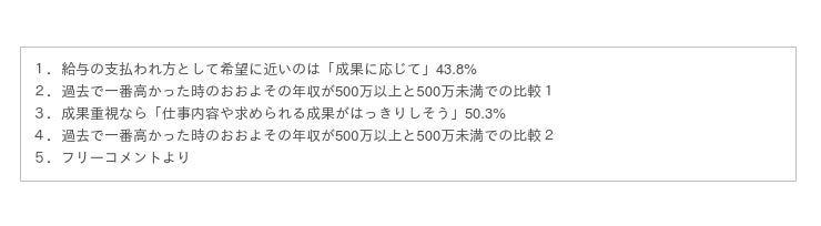 1.給与の支払われ方として希望に近いのは「成果に応じて」43.8%