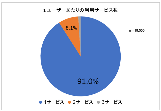 2022 年度における 1 ユーザーあたりの 5 つの動画配信サービスの契約数は、「 1 サービス」の人が全体の 9 割超でした。動画配信サービスの利用者の大多数は、複数のサービスの中から厳選して利用しているようです。