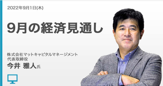 【外為どっとコム】今井雅人氏が解説!『9月の経済見通し』9/1(木)19時よりオンラインセミナー開講