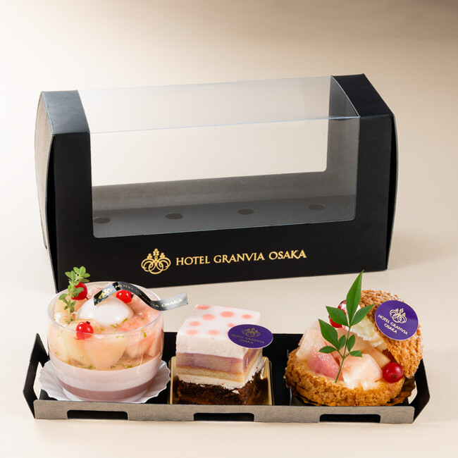 アフタヌーンティーセットで提供するパティシエこだわりのスイーツ3種類を詰め合わせた、テイクアウト限定商品です。見た目も華やかで、ちょっとしたお手土産にもおすすめです。