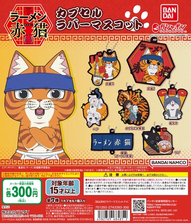 株式会社バンダイ ベンダー事業部(本社:東京都台東区)は、TVアニメ「ラーメン赤猫」のガシャポン(R)『ラーメン赤猫 カプセルラバーマスコット』(1回300円・税10%込、全7種)を2024年8月第5週から順次、全国のガシャポンバンダイオフィシャルショップ、玩具売り場・量販店・家電店などに設置されたガシャポン自販機シリーズにて発売いたします。