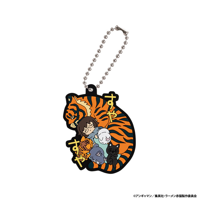 本商品は、猫が営むラーメン屋で働くこととなった主人公・珠子と、猫たちとの日常を描いた異色のお仕事物語「ラーメン赤猫」のラバーマスコットです。お店で働く猫たちはもちろん店頭の暖簾デザインもラインアップしており、猫たちと暖簾を重ね付けしても可愛いマスコットチャーム仕様です。