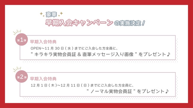 OPEN〜11月30日(水)23:59までに入会した方全員に"キラキラ実物会員証&直筆メッセージ入り画像"をプレゼント!