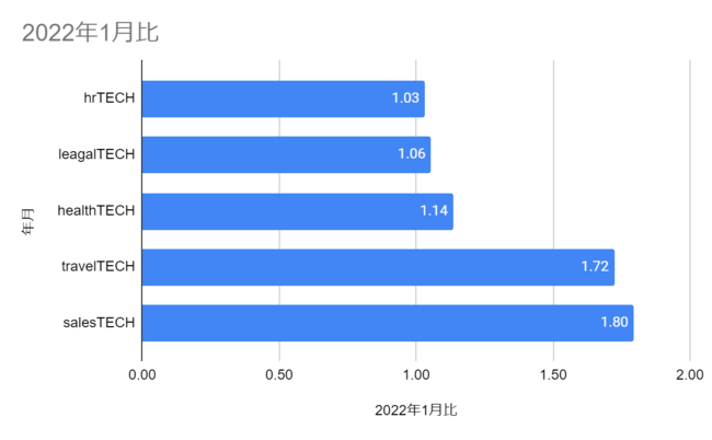 ■トラベルTECHも情勢変化を受けて1.72倍と高い伸びを見せた。