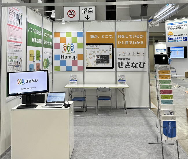 Humapのブースでは、在席管理ツール「せきなび」や ハラスメント&コンプラ調査「CHeck」のアンケート画面などを 実際にご覧いただけるデモ機をご用意。
