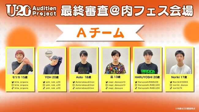 2022年10月より開始された、「RAB Produce U-20 Audition project」の最終審査は、2023年5月4日(祝・木)にお台場で開催の肉フェス 2023 Theカーニバル TOKYO 【ネットカルチャーDAY】ステージにて開催された。