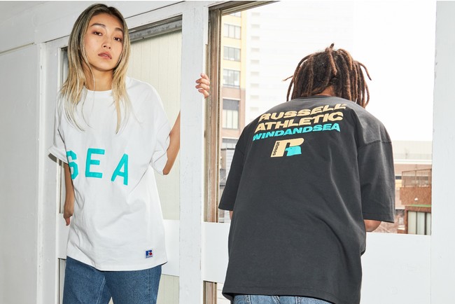 また本コラボを記念して世界で初めてスウェットシャツの原型を作り、世界初のラバープリントを開発したRUSSELL ATHLETICとのトリプルコラボレーションも登場いたします。
