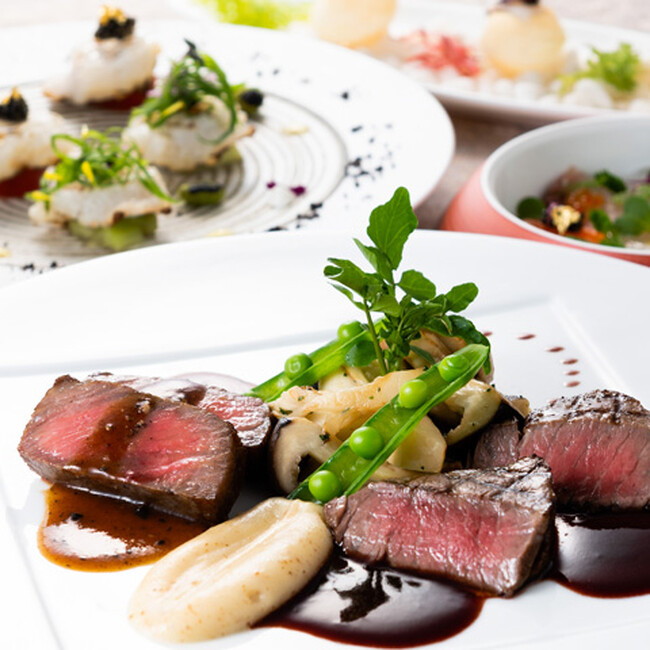 夏季に旬を迎える兵庫や瀬戸内の食材を使用したシェフ福山の季節限定の鉄板焼コース「季〜こよみ〜」と海外でも知名度の高い『神戸牛』も堪能できるステーキコースをオプションでご用意いたします。