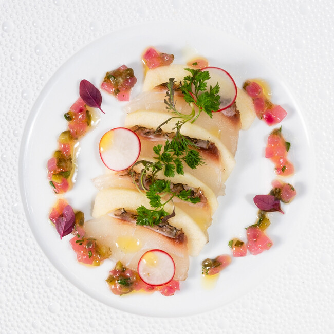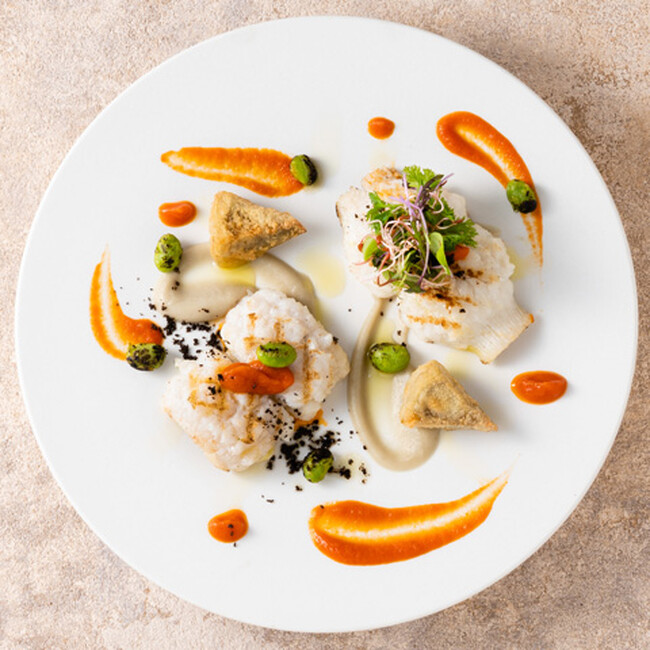 ランチは瀬戸内の「鱧」を使用したグリルと、メイン料理は3種類からお選びいただけます。ディナーのメイン料理には、2種類の部位を一皿で味わう淡路「椚座牛(くぬぎざぎゅう)」のテグネリゾンをご用意します。