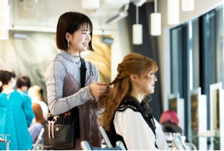 大阪モード学園メイク・ネイル学科の学生達によるヘアアレンジ、ポイントメイク、