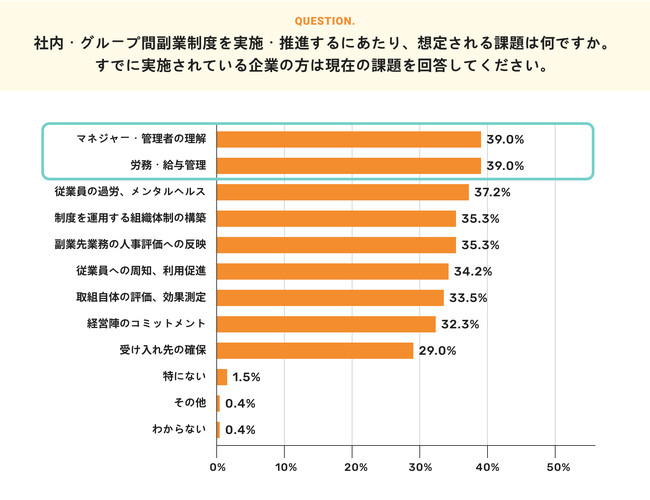 〜社内・グループ間副業の実施は約40%、課題は“現場理解”と“労務・給与管理”〜