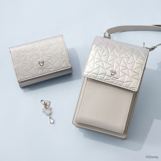 財布やポーチ、ショルダーバッグを中心に取り扱う「サマンサタバサプチチョイス」。ディズニー100周年の特別なアートを使用した、ジェイアール京都伊勢丹限定デザインの折財布、ウォレットショルダー、ファスナーチャームが登場。艶感のある加工を施した合皮をさまざまな角度にカッティングしたような型押しが特徴のシリーズです。
