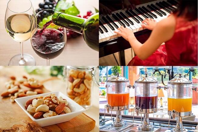 夕方には楽器の生演奏もあり、夕食前後のひと時、赤ワインやコーヒーを片手に耳を傾けてくださるお客様も。
