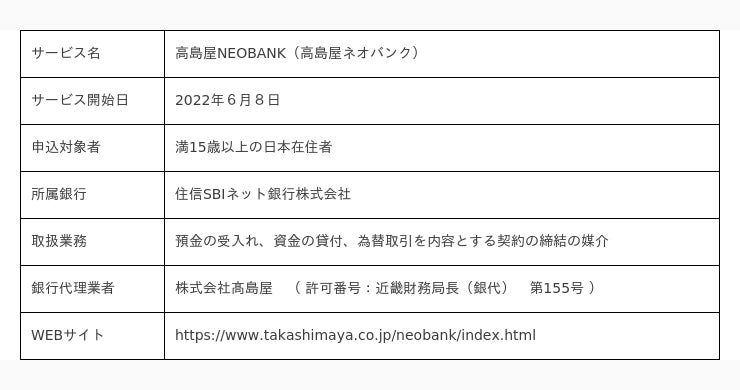■高島屋NEOBANK 概要