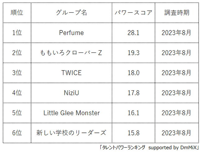 『タレントパワーランキング』では、タレントパワーランキングに登録されている女性音楽グループのパワースコアを調査。