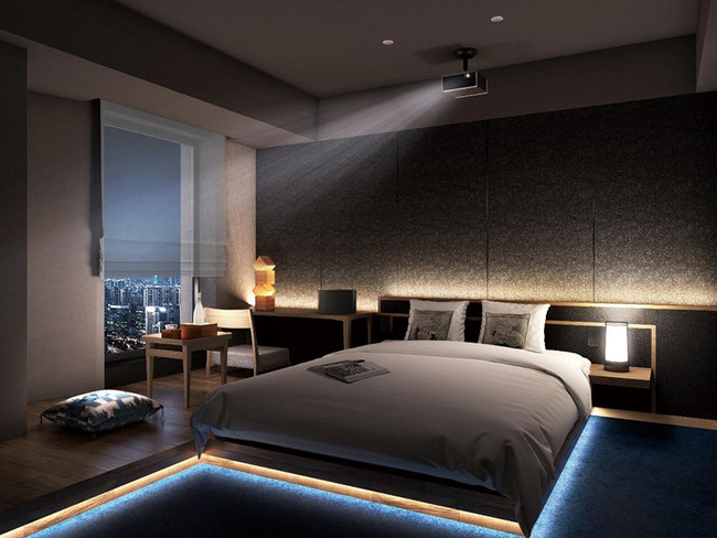 また、躍動感あふれる銀座コリドー街に佇むホテルの客室として「昼夜を問わず充実した時間を過ごせる場所」「そこでしか出来ない体験をする場所」であるべく、全室に高音質(*1)スピーカーとプロジェクターを完備。くつろぎとエンターテインメントなコンテンツが生み出す新たなコントラストの中で、音楽や映像、光に酔いしれながら自分だけの充実した時間を過ごせる場所をご提供いたします。