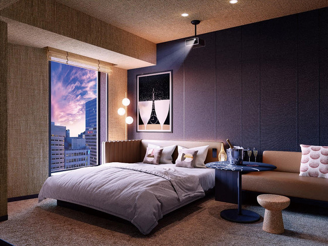 客室は約23〜60平米の全161室。「プロセッコ」「オミキ」「キャンバス」タイプと、それぞれ「酔いしれる」をコンセプトに “お酒” のエッセンスが散りばめられた客室デザインとなっています。