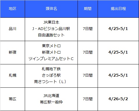 「THE SNOW COMIC」をドローンで空撮したグラフィック・映像を使用した、記念広告が品川・新宿・札幌・帯広にて掲出中です。 「ふたりの足跡は、北の大地に刻まれている。」というコピーと共に、 スノーアートの実際の大きさを感じられるグラフィックです。