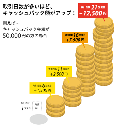 取引日数に応じてキャッシュバック金額が最大25%増額!