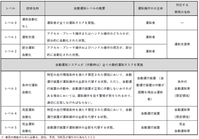 ※JASO TP-18004および国土交通省の報道資料(2021年12月11日発表)「自動運転車両の呼称」より作成